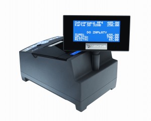 - Graficzne, niebieskie wyświetlacze LCD dla kasjera i klienta. Wyświetlacz klienta: 132x64 piksele, kasjera 132x32 piksele